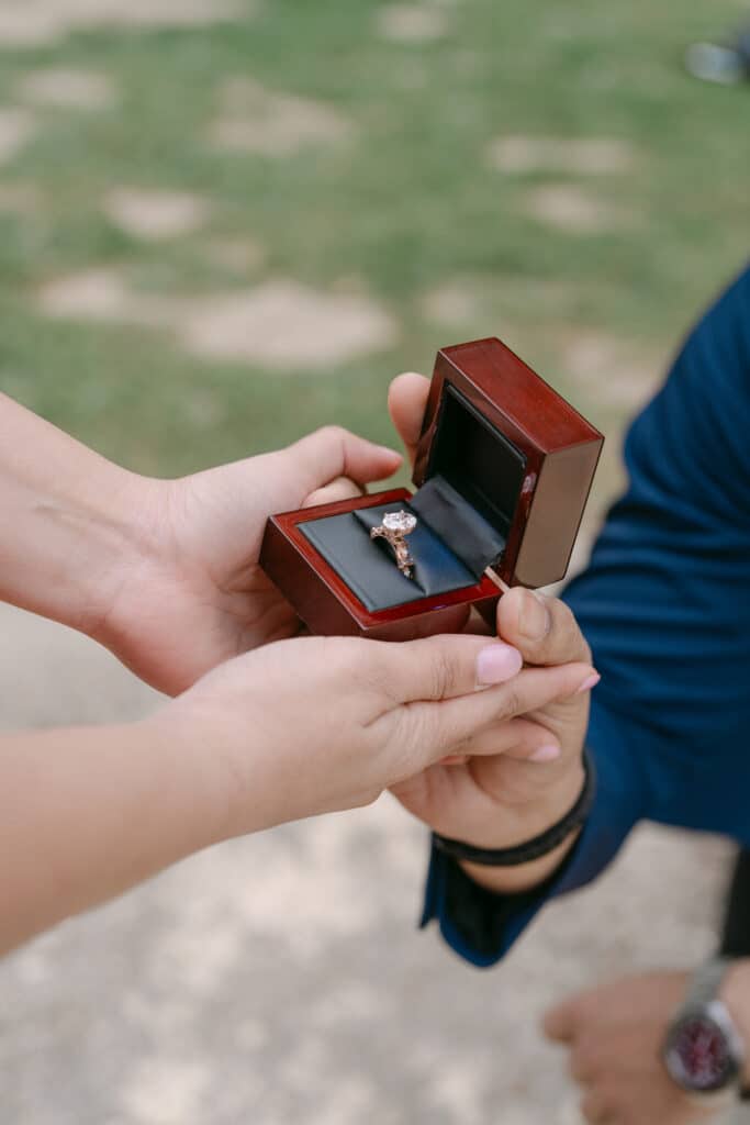 When the time finally came, everything stopped. He took her hand. She smiled. And then he asked. Her reaction was instant. She said yes, and they both laughed with relief. As a result, the moment felt pure and honest. Nothing else mattered. Later on, they hugged again, still a bit overwhelmed by the emotion.