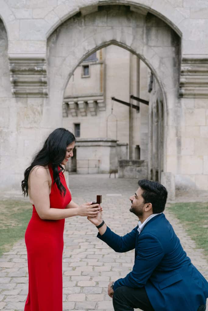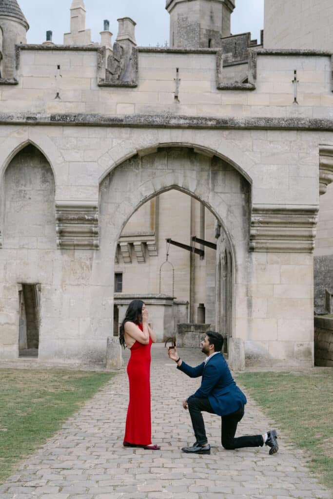 Proposals often feel emotional and full of meaning. This one at the Château de Pierrefonds was exactly that. The couple came from America, and they brought a warm and gentle energy. Even so, the moment felt calm and intimate. As a result, the whole experience became both simple and unforgettable.